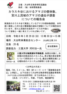3月29日(日)に宮川上流域におけるアマゴ調査報告会を行います。