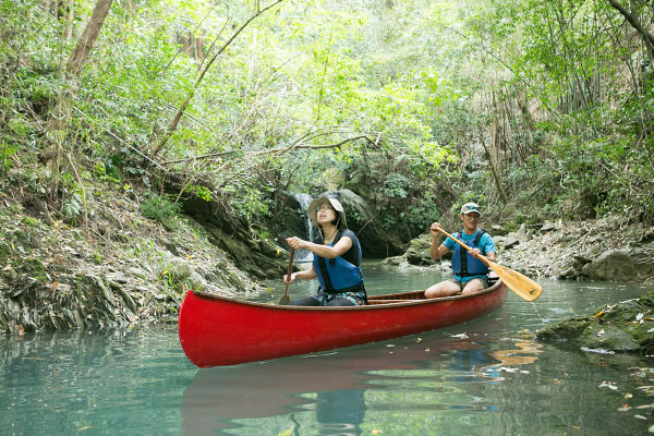 大台町には日本一美しい川に選ばれた宮川が流れています。「カナディアンカヌー」は濡れにくく、ゆったりと景観を楽しむことができます。水に濡れずに体験できるため春や秋にもおススメ。
