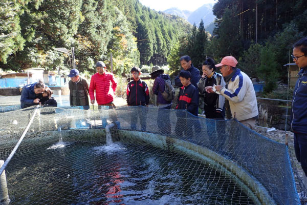 大台町の谷川には清流の女王とも呼ばれるアマゴという渓流魚が生息しています。大台町生物多様性協議会は、宮川の在来遺伝子を持つアマゴを保全する活動を行っています。実際にアマゴが生息する環境で美しい渓流の風景を楽しみながら、鳥害を防ぐ作業、在来個体群を使用した養殖場を見学します。