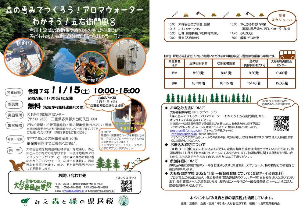 11/15(土) 森の恵みでつくろう!アロマウォーター わかそう! 五右衛門風呂